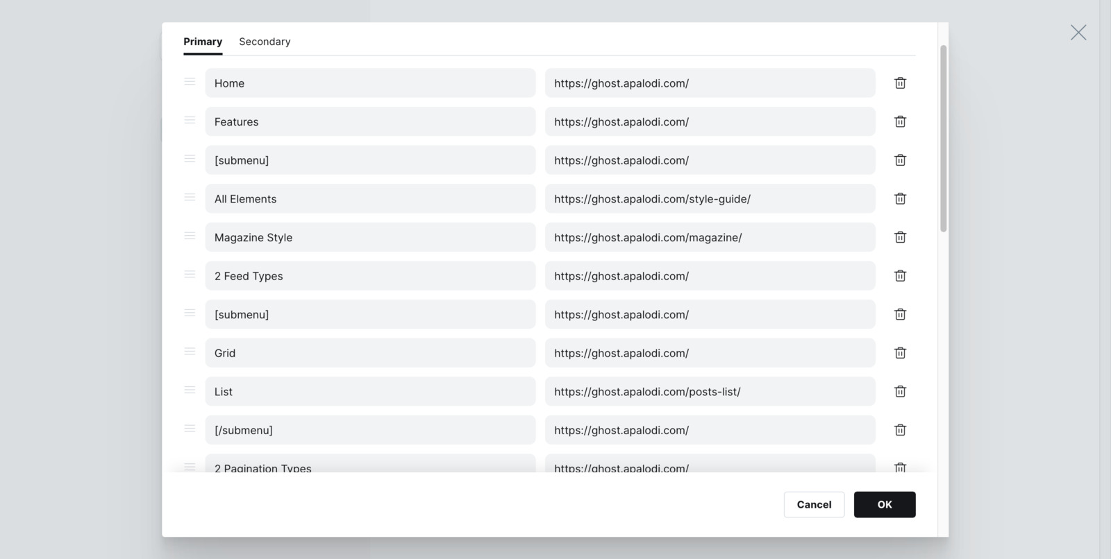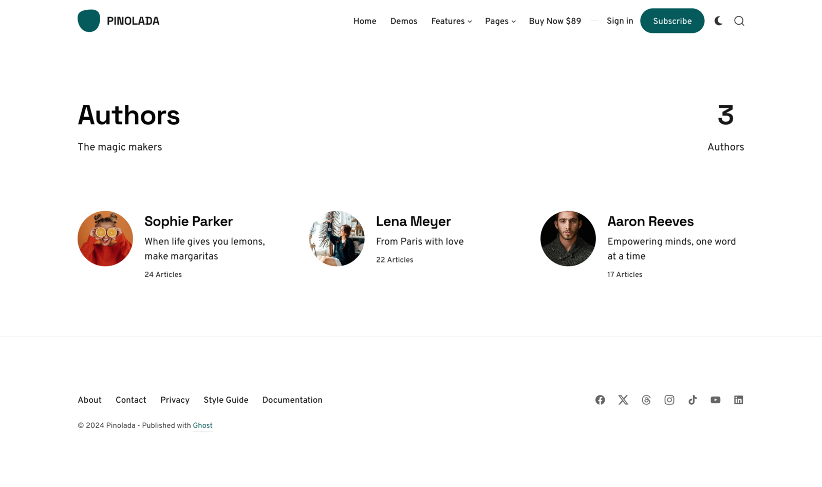 Example https://facebook.com/ghost, https://instagram.com/ghost, https://tiktok.com/ghost, https://linkedin.com/ghost, https://youtube.com/ghost