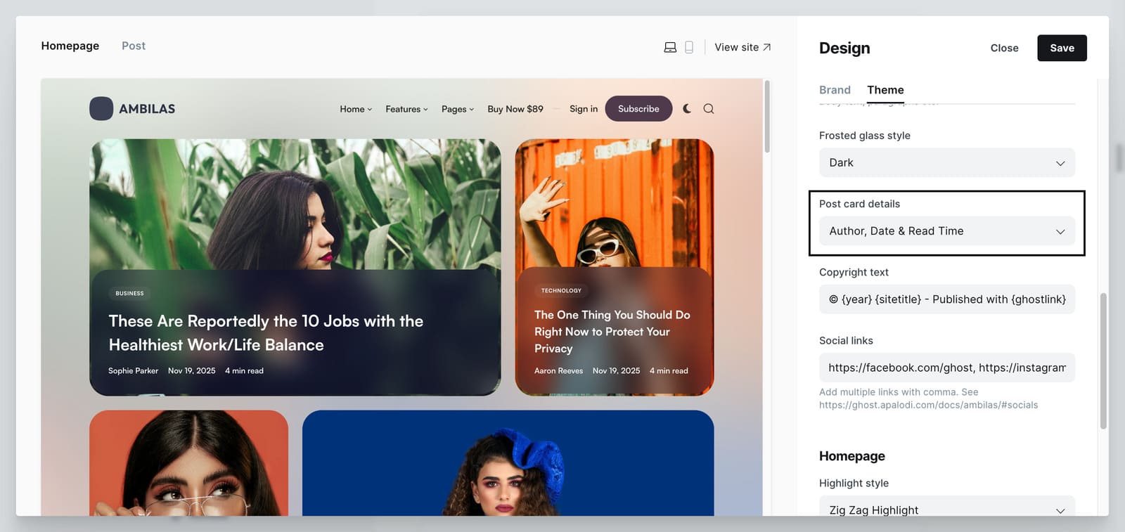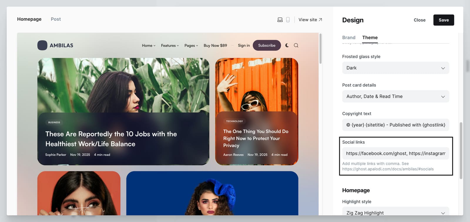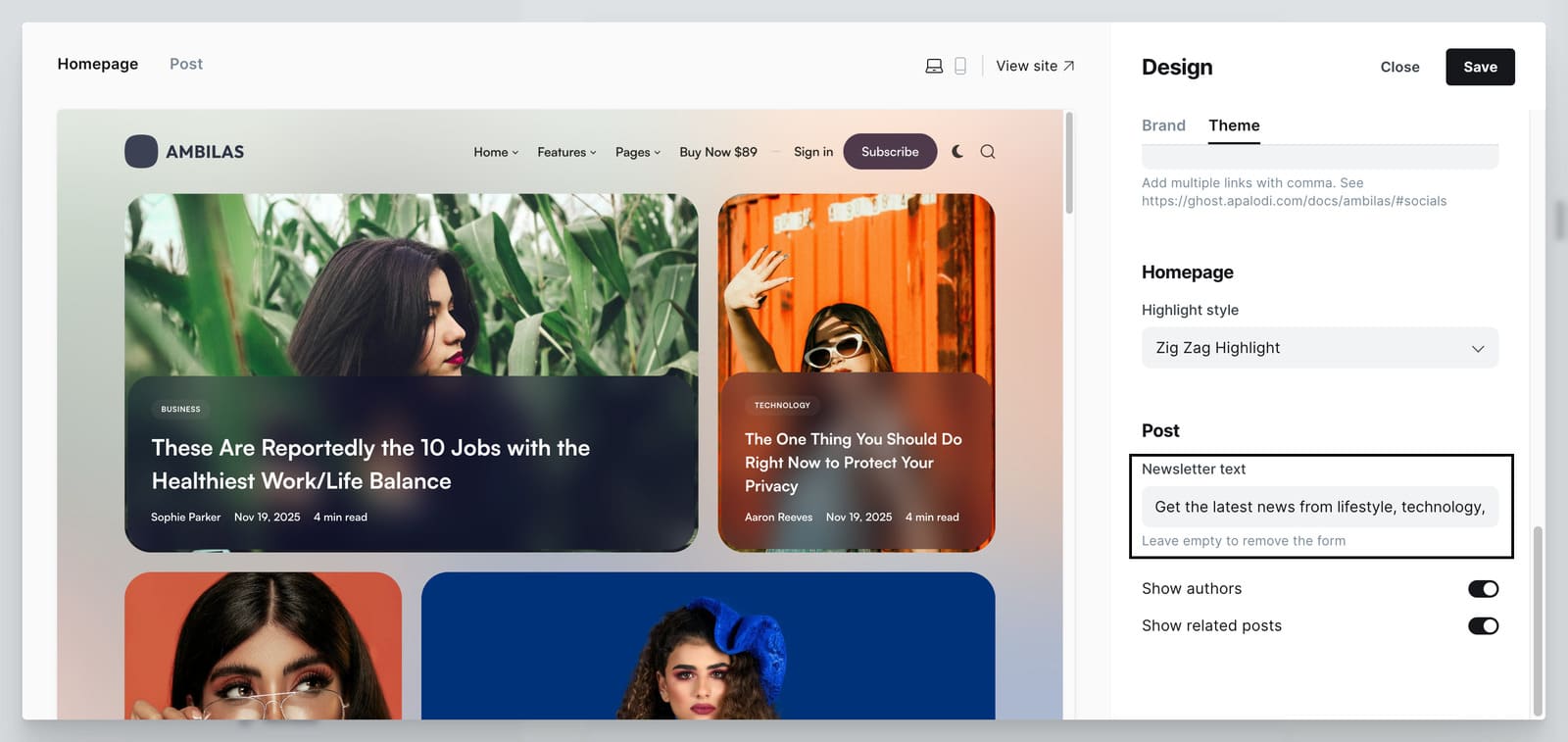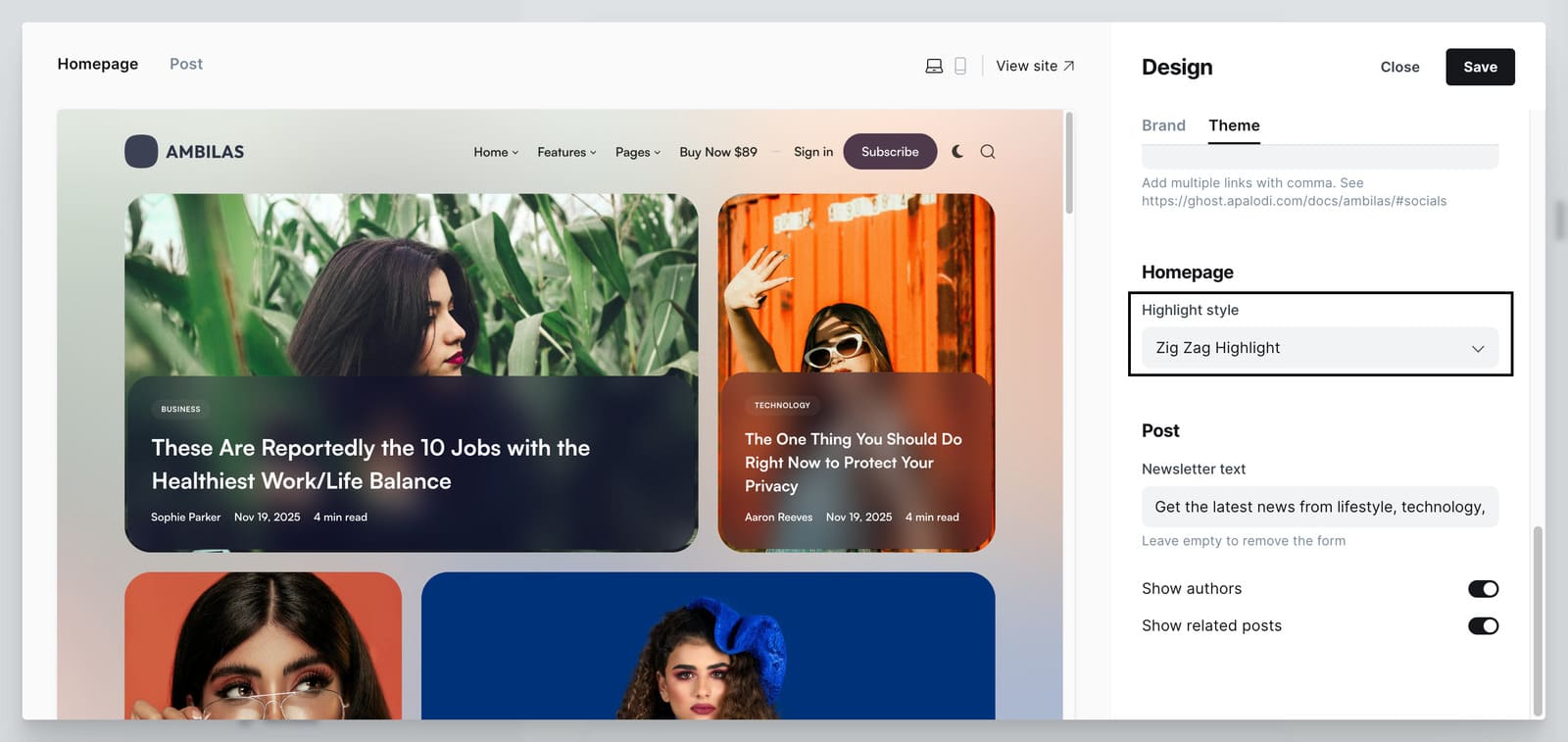 Welcome to Ambilas documentation. Ambilas is a Refreshing Blog & Magazine Ghost Theme.