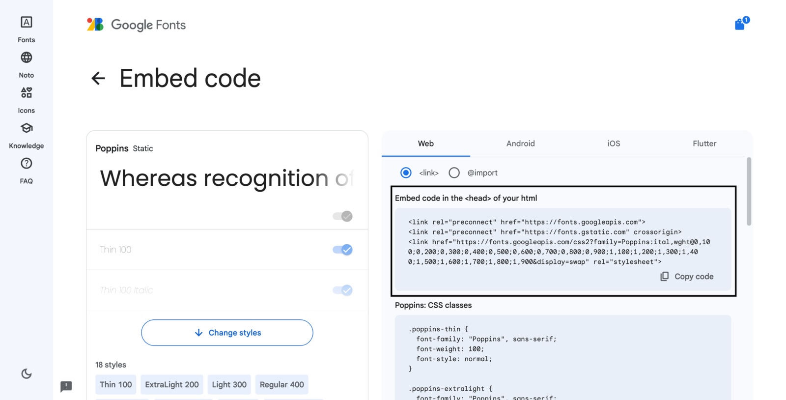 After that you will need to use the CSS custom properties to select the font name and weights.